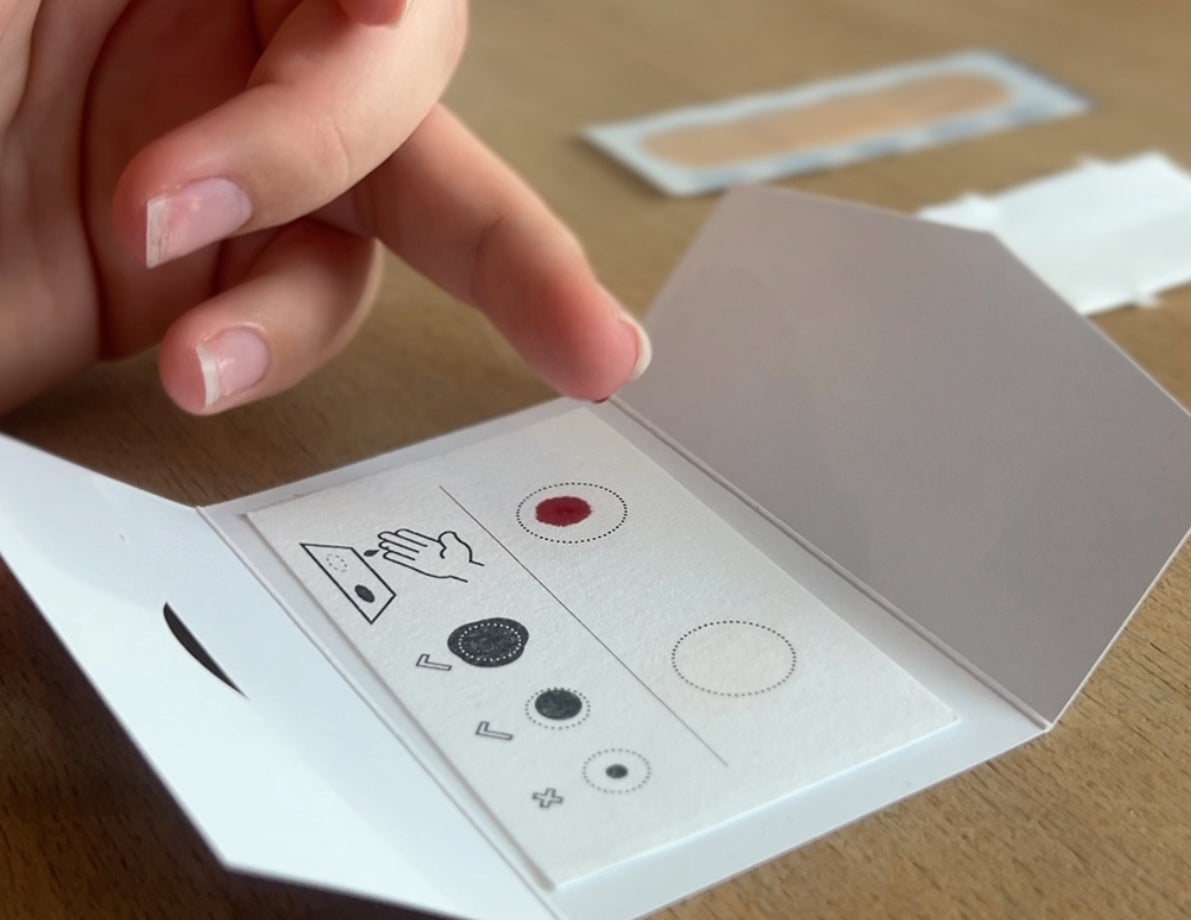 - Neem een klein bloedstaaltje met de bijgeleverde vingerprik.