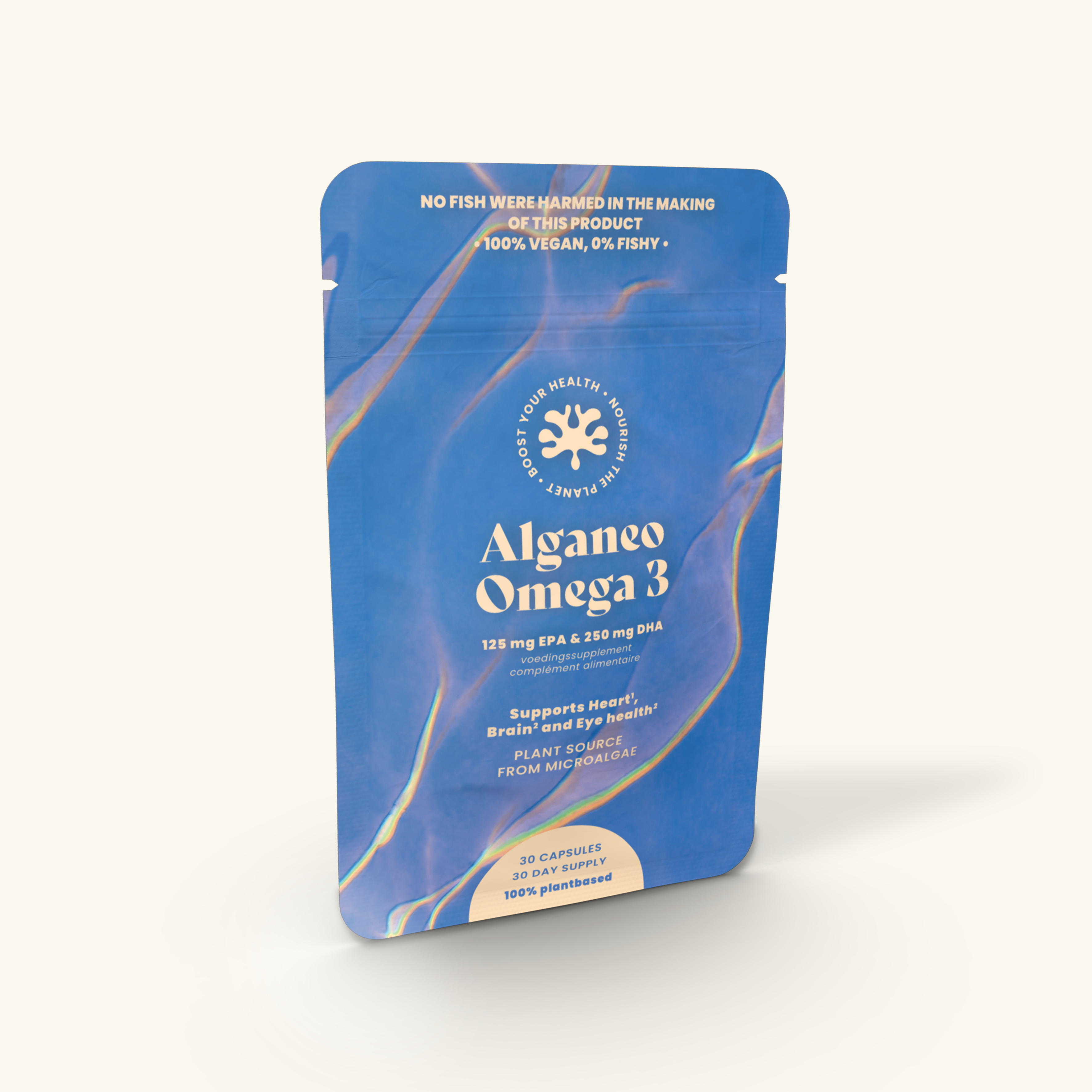 - 250 mg DHA + 125 mg EPA uit duurzame algen